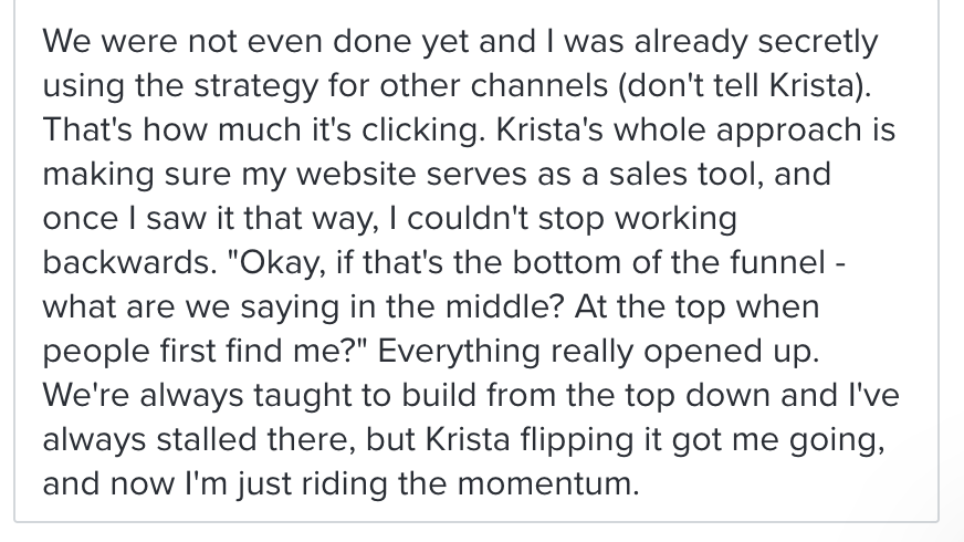 When your website speaks to quality-minded clients — through the way you explain your process, the results you highlight, and the standards you hold yourself to — it signals to the price-shoppers that they’re in the wrong place. They self-select out. The prospects who do book a call have already decided you’re worth it; they pretty much just need to sort out the details.